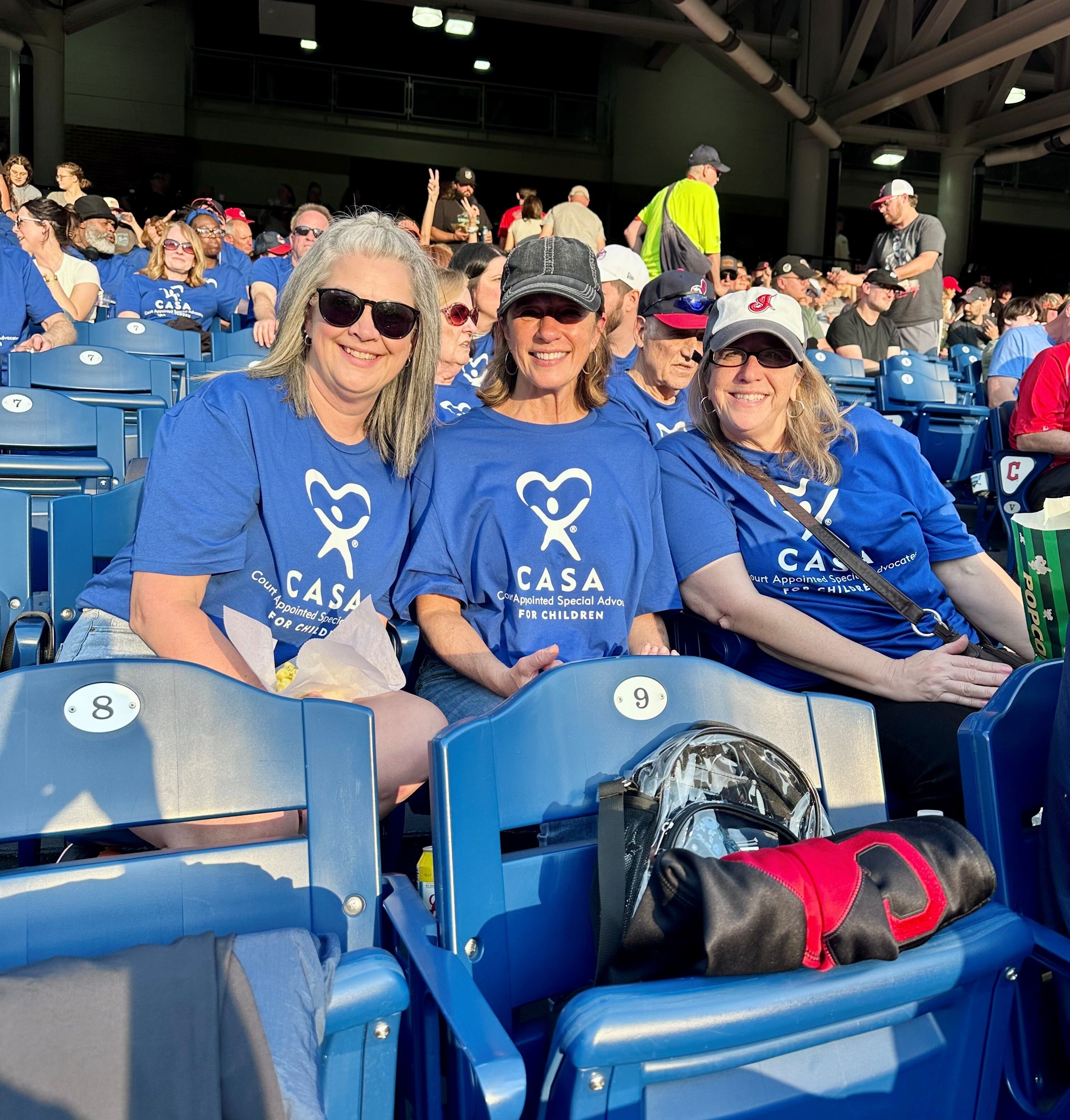 Designed to show appreciation for CASA volunteers and raise awareness about CASA volunteer work, Ohio CASA staff teamed up with the Cincinnati Reds, Cleveland Guardians, Columbus Clippers, Dayton Dragons, Southern Ohio Copperheads, and Toledo Mud Hens to host “CASA Day” games. Volunteers were featured at the games, from throwing out the first pitch to delivering the game ball. At each game, attendees wore matching blue CASA shirts and spread the word about CASA programs in various ways.